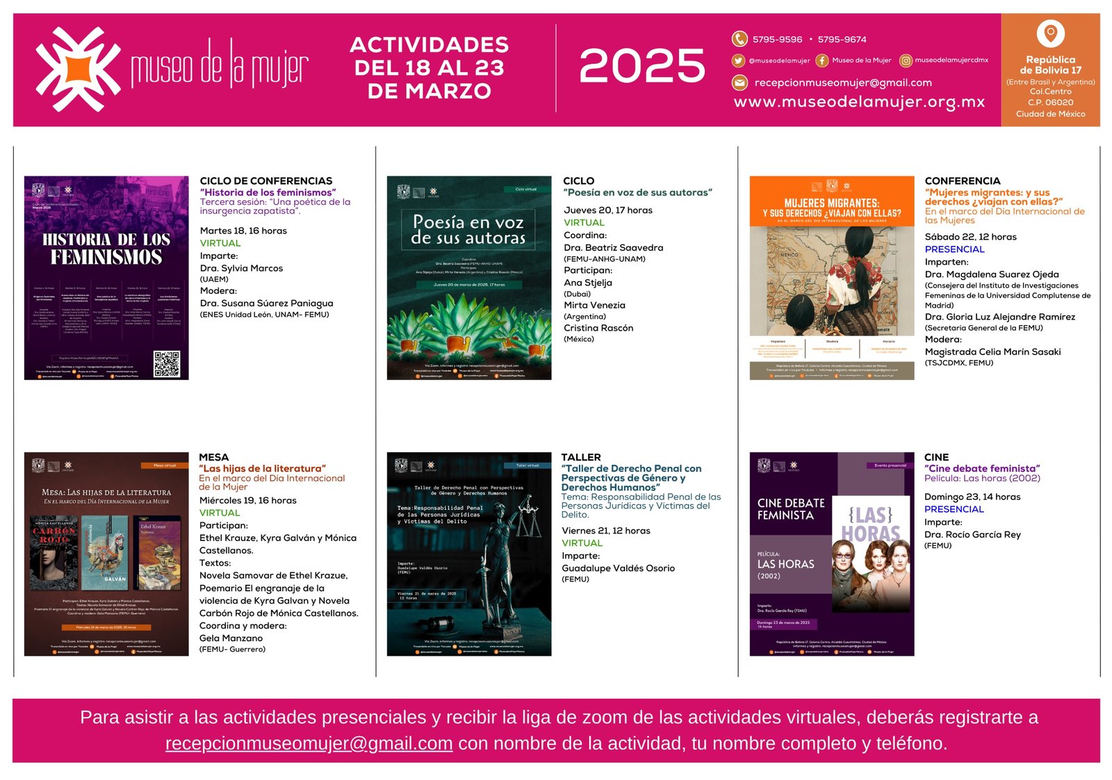 Para mayor información e inscripciones, las personas deben registrarse al correo: recepcionmuseomujer@gmail.com