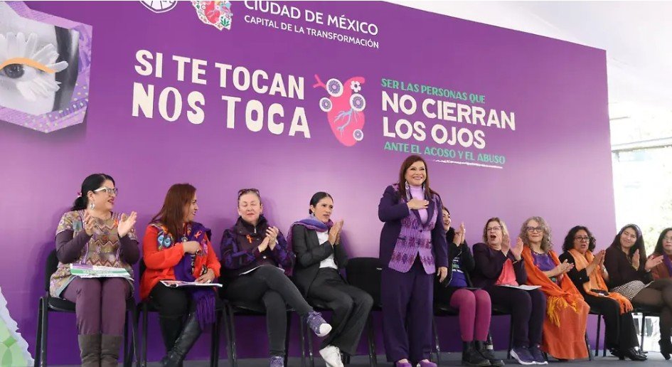 Clara Brugada presentó la campaña “Si te tocan, nos toca” en la Glorieta de Insurgentes / Foto: gobierno capitalino