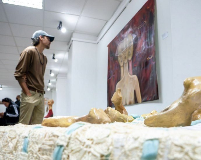 La muestra, inaugurada el 16 de enero en la Galería L, en el Vedado capitalino -segunda exposición personal de la creadora- reúne 29 piezas entre pintura, escultura e instalación, realizadas bajo el amparo de la Beca de Creación El reino de este mundo, otorgada por AHS.