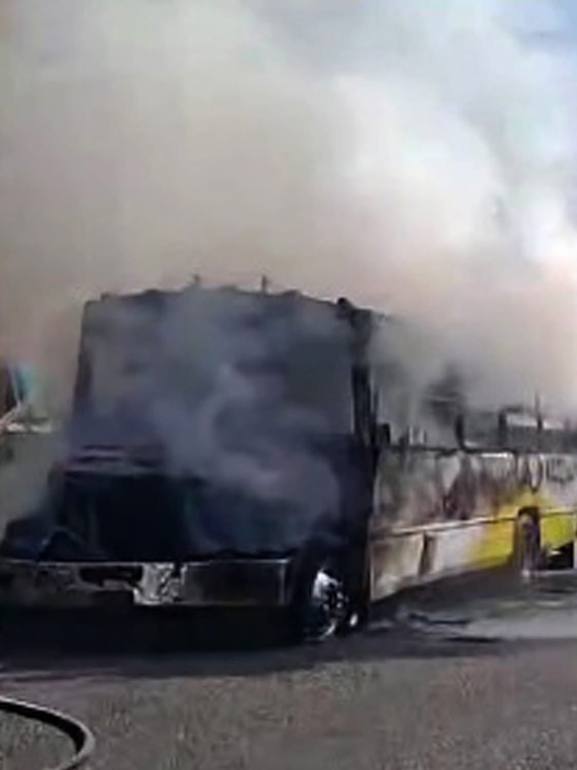 Las unidades incendiadas con gasolina fueron dos autobuses del transporte público, una camioneta de servicio público y un tráiler que fue usado para bloquear la autopista del sol a la altura de la caseta de peaje La Venta.