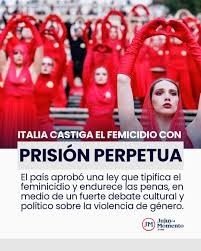 SemMéxico, Cd. de México, 29 de noviembre,  2025.- En el marco del 25 de Noviembre Dia Internacional para la Eliminación de la Violencia contra la Mujer, Italia aprobó la cadena perpetua para el delito de feminicidio. De acuerdo a Associated Press  la ley tuvo un amplio respaldo bipartidista durante la votación final en la Cámara Baja, con 237 votos a favor.