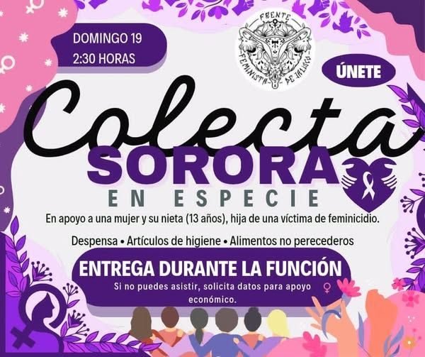 Frente a la violencia institucional, las mujeres somos red, somos apoyo y somos resistencia” por eso organizaron la colecta de despensa, artículos de higiene o alimentos no perecederos. Durante la protesta hicieron pase de lista de las víctimas de feminicidio.