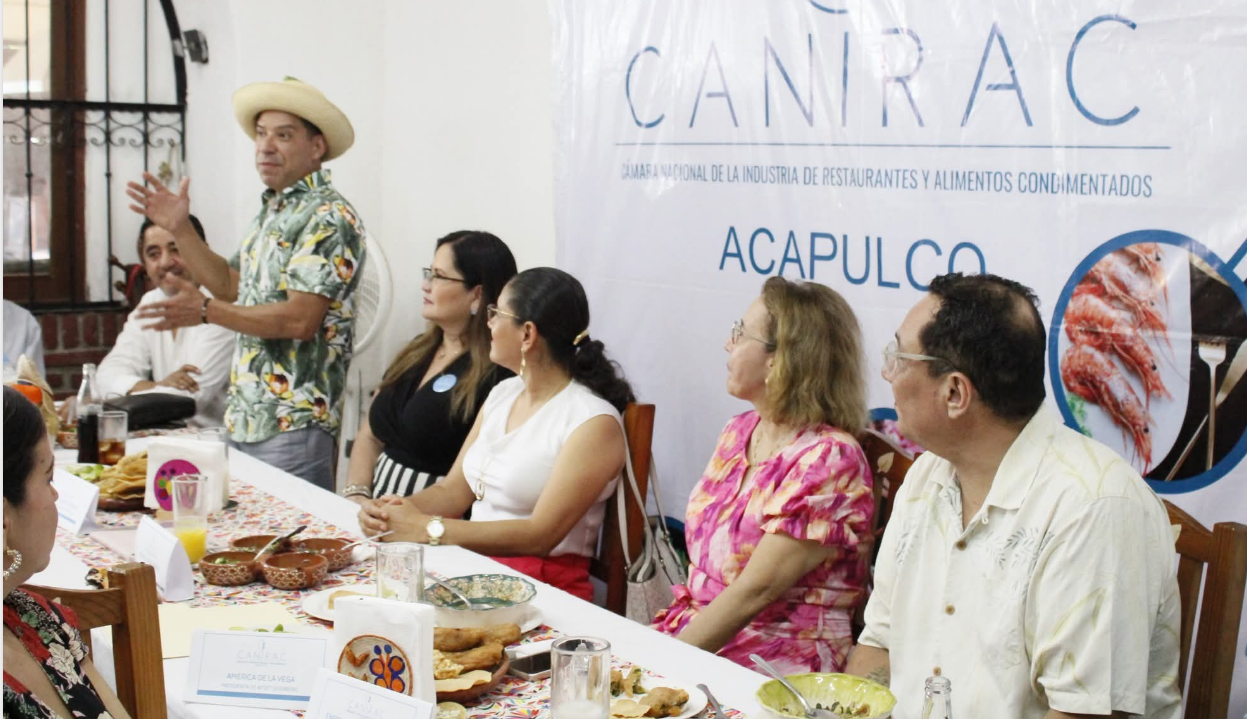 En la reunión con integrantes de la Cámara Nacional de la Industria Restaurantera y Alimentos Condimentados, CANIRAC, acompañada entre otros por el comediante El Costeño quien se sumó a la convocatoria de seguir consumiendo este pozole guerrerense.