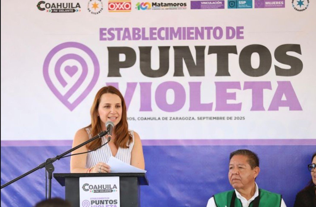 “Con los Puntos Violeta estamos actuando de manera contundente para ofrecer a las mujeres que enfrenten situaciones de violencia un lugar seguro, donde puedan pedir apoyo a los cuerpos de seguridad y de emergencias, y ser canalizadas para recibir atención integral, porque en Coahuila, ninguna mujer está sola”, sentenció.