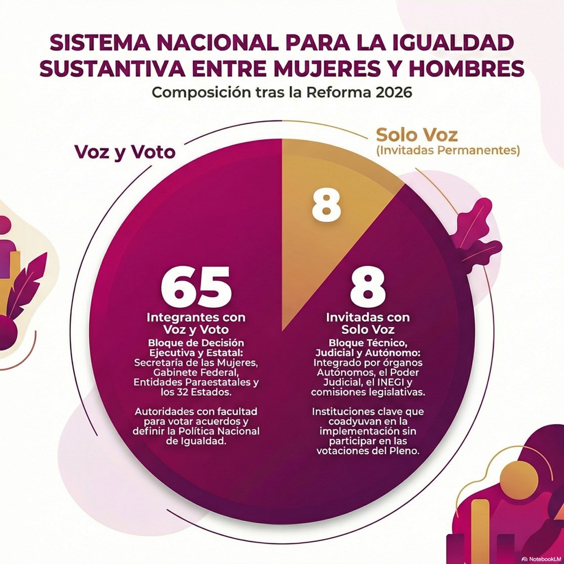 SemMéxico, Ciudad de México, 9 de febrero, 2026.- Como ya había referido en la parte I de este artículo, la Política Nacional para la Igualdad Sustantiva entre Mujeres y Hombres se integra por tres instrumentos: un Programa Nacional, un Sistema Nacional y la Observancia. Esta última es una tarea que recae en la Comisión Nacional de Derechos Humanos, aunque tras las reformas a 17 leyes publicadas en el DOF el pasado 15 de enero (DOF 15/01/2026, 2026), ahora es una labor compartida con la Secretaría de las Mujeres. Hay que considerar que la Ley General para la Igualdad entre Mujeres y Hombres sigue sin reconocer explícitamente un cuarto instrumento que resulta crucial: el presupuesto; aunque todo lo relativo a este se encuentra legislado en la Ley de Planeación y en la Ley Federal de Presupuesto y Responsabilidad Hacendaria.