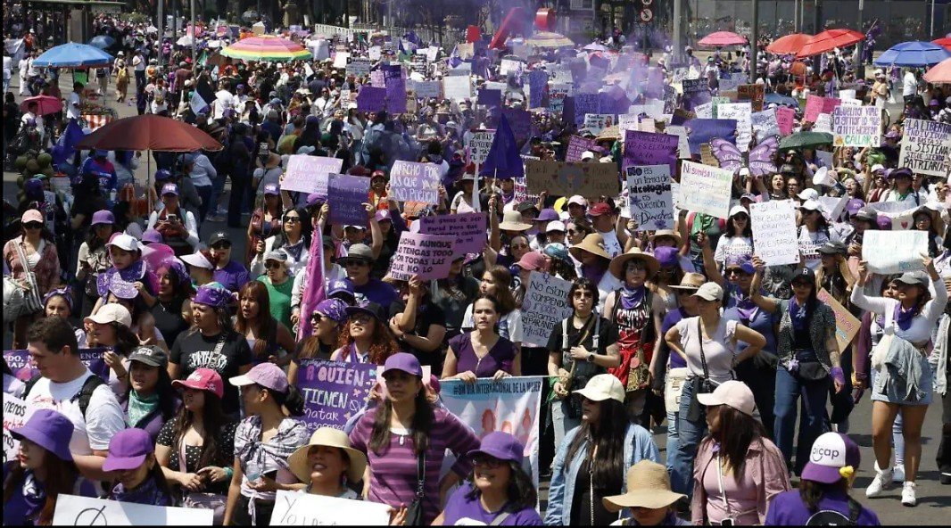 SemMéxico/El Sol de México, 8 de marzo, 2026.- En el Día Internacional de la Mujer, contingentes de colectivas se comenzaron a reunir cerca de las 10:00 horas en la alcaldía Cuauhtémoc, sobre Paseo de la Reforma, a la altura de la Glorieta de las Mujeres que Luchan.