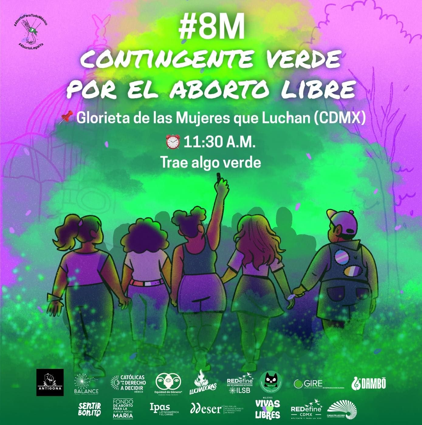 El contingente por el aborto libre se concentrará en la Glorieta de las Mujeres que Luchan a las 11:30 horas; el colectivo Las Sabinas, que protesta contra la violencia sexual infantil, saldrá del lado izquierdo del Monumento a la Revolución a las 10:30 horas. El contingente Medusas Amarillas, apto para infancias, personas adultas mayores y quienes asisten por primera vez, partirá del Metro Tasqueña a las 11:00 horas y del Metro Revolución a las 12:00 horas.