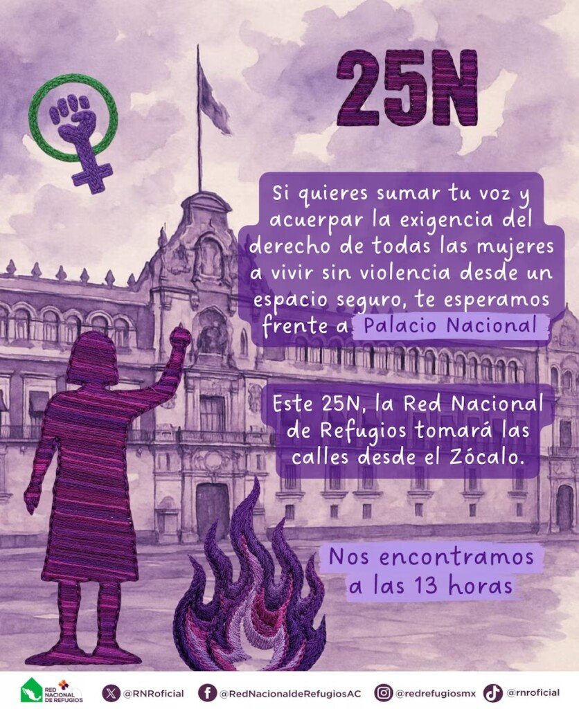 La convocatoria es: “Te esperamos en Palacio Nacional para alzar la voz por nuestro derecho a vivir libres de violencia y acuerpar a nuestras compañeras” a las 13 horas.