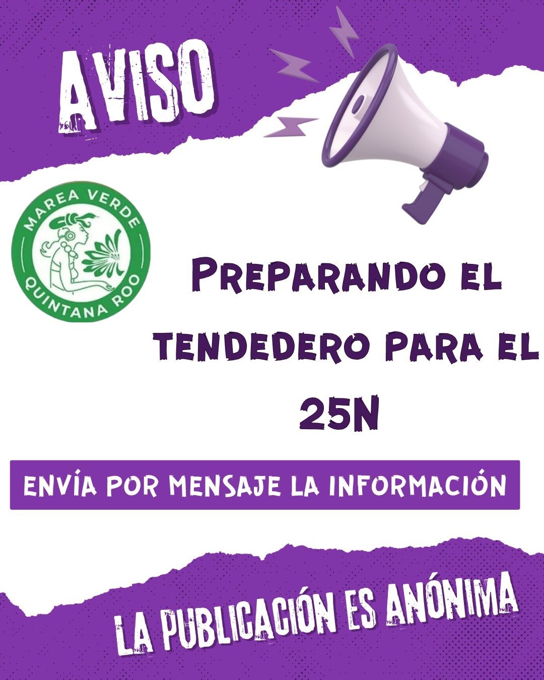 Marea Verde Quintana Roo empezó a organizar el tendedero desde el mes de octubre convocando a mandar nombre completo, foto, lugar donde trabaja o estudia, y el tipo de violencia que ha cometido.  Señala que el 25N es la fecha en la que alzamos la voz con fuerza y todos los medios para exigir el respeto a nuestros derechos. Alertamos a otras mujeres acerca de la existencia de personas violentas y misóginas ya sean autoridades, profesionistas o familiares.