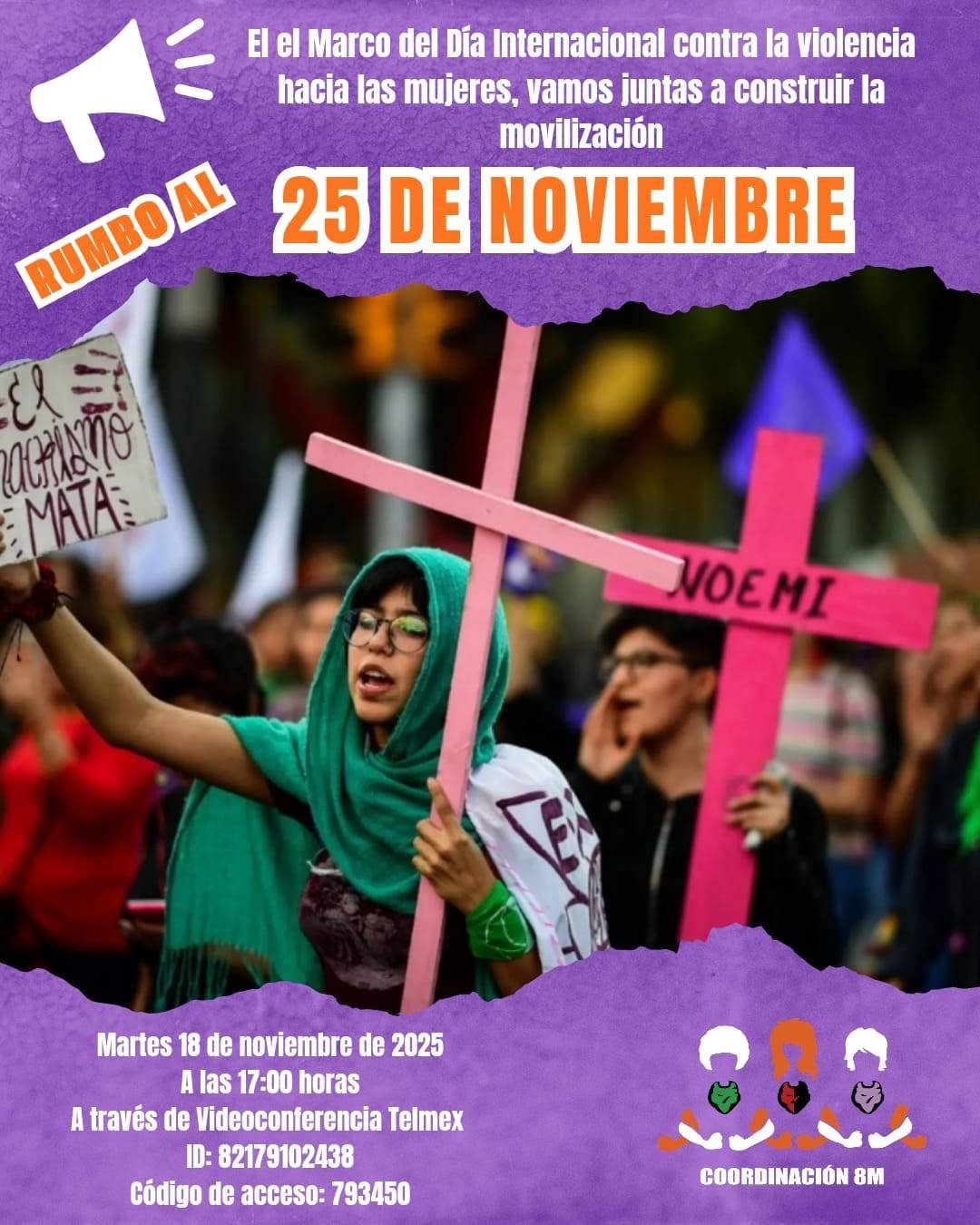 No es una marcha es una movilización de mujeres, las que ¡No llegamos todas! con  la primer presidenta de México, Claudia Sheinbaum Pardo, de acuerdo a la convocatoria de la Coordinación 8M-19 este 25N Dia Internacional de la Violencia contra la Mujer.