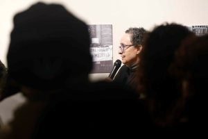 Pensando en el proyecto que realizo actualmente, titulado Hablando se entiende la gente. Interviniendo el archivo de Pinto mi Raya a partir del texto, la imagen y la palabra, decidí hacer un recorrido de la exposición basado en los materiales de archivo que comparten en nuestro archivo y el de Ana Victoria, lo cual no es extraño porque nuestra amistad y múltiples complicidades en proyectos de arte feminista datan de 1976. En este evento, después de la presentación de Karen, caminé por su obra para recordar y honrar nuestra una larga amistad. Lo único triste es que Ana Victoria hoy vive en un asilo de ancianos y no pudo asistir ni a la inauguración de la muestra, ni a mi recorrido. Le está llegando el reconocimiento que merece cuando ya no lo puede disfrutar. Se imaginarán que todo esto hacía que esa noche tuviera los sentimientos a flor de piel.
