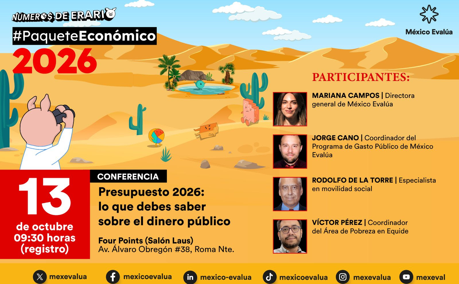 Mariana Campos, directora general de México Evalúa, al presentar el análisis del paquete económico 2026 señaló la importancia de que se conozca en qué se gasta el dinero público, porque es de todos, y señaló que se requieren finanzas públicas sostenibles, por lo que debe hacerse un presupuesto con escenarios geopolíticos y con visión a largo plazo, con previsión a acciones no previstas.