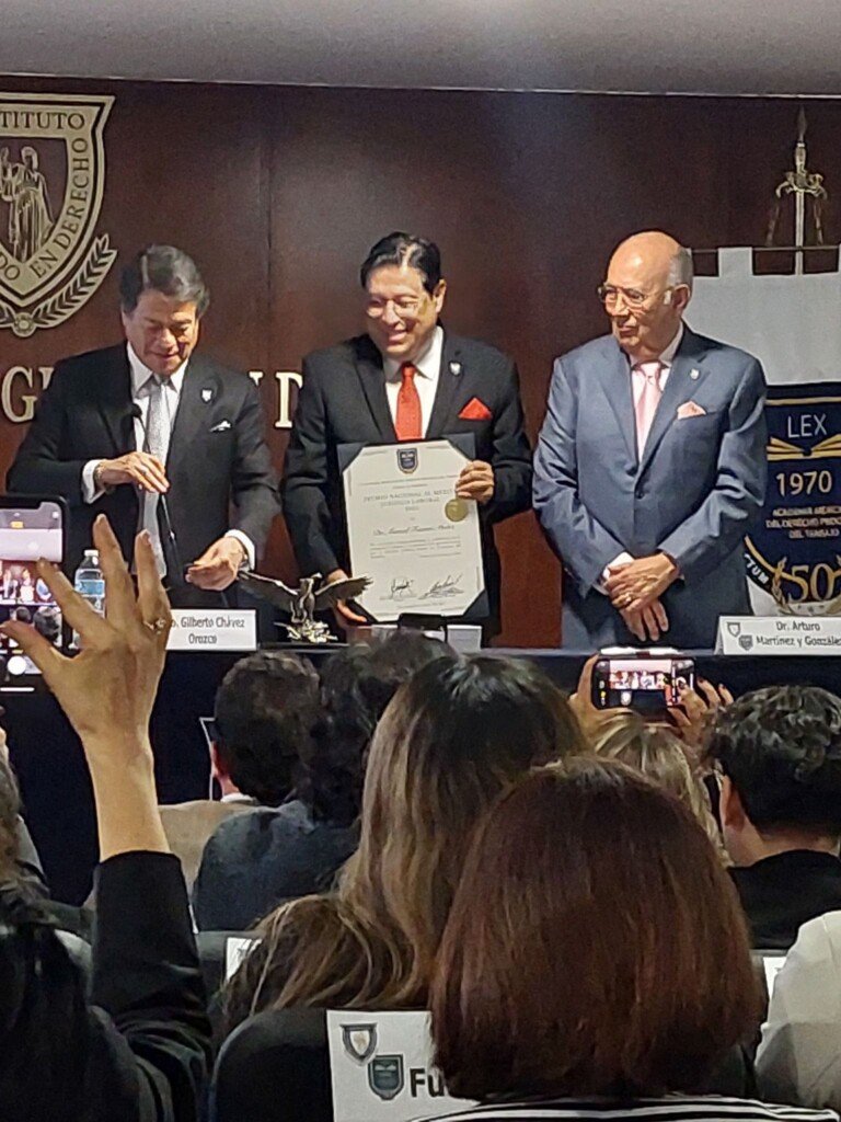 Otorgado por la Academia Mexicana de Derecho Procesal del Trabajo, este 13 de diciembre, recibió el premio con agradecimiento, orgullo y humildad, destacó que un premio nunca es retrato de una sola persona, sino un espejo donde aparecen todos los que lo hicieron posible. Se trata de reconocer que no caminamos solos, trabajamos desde una historia compartida, expresó.