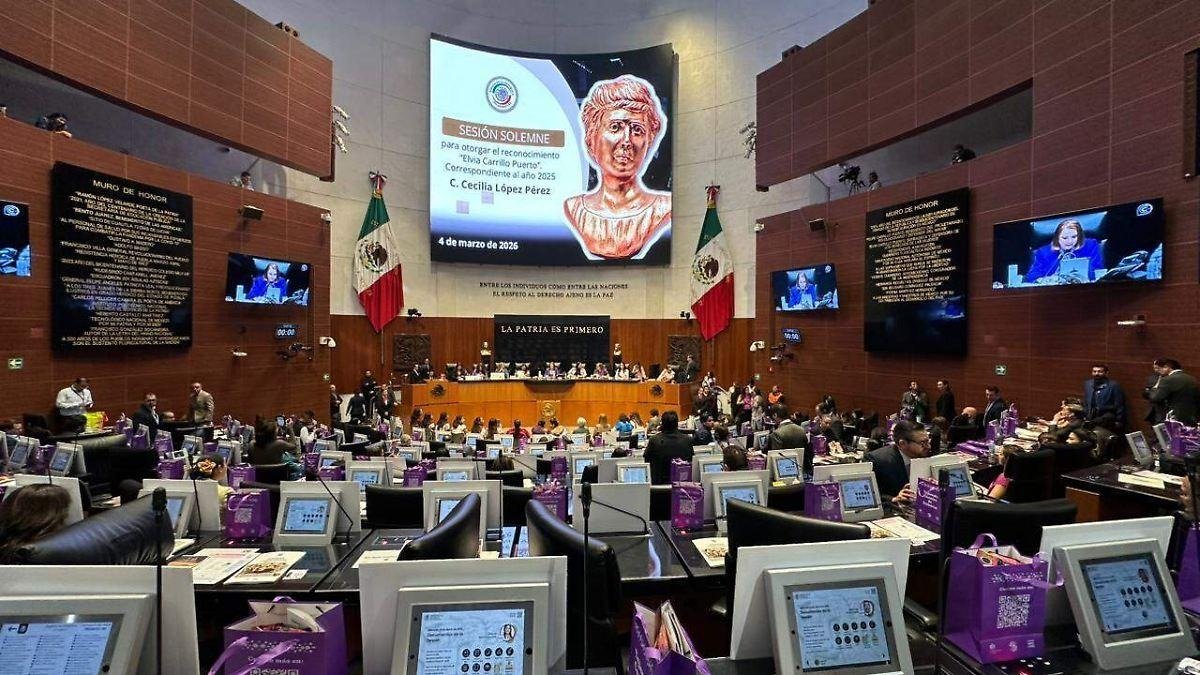 SemMéxico. Cd. de México. 4 de marzo 2026.- La entrega en el Senado del reconocimiento Elvia Carrillo Puerto 2025 a Cecilia López Pérez, indígena Tsotsil de San Andrés Larrainzar que ha acompañado a más de 330 mujeres en sus procesos de acceso a la justicia por diversas violencias y defendiendo sus derechos en su propia lengua fue un reconocimiento a las mujeres indígenas del país.