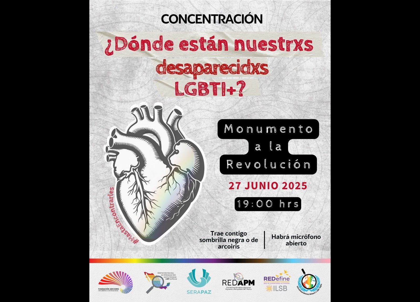 Una acción de resistencia y memoria, para visibilizar y exigir justicia por las desapariciones de personas LGBTI+ en nuestro país y exigencia de la búsqueda adecuada y el acceso a la justicia de lxs desaparecidxs LGBTI+ y sus familias.