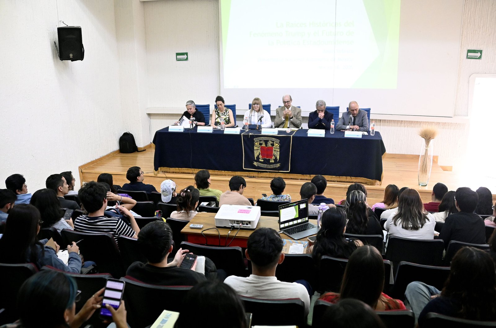 Reagan usó el lema que le copió Trump: “Make America great again”, con personas detrás de él que eran los neoconservadores, hombres cultos, entre ellos profesores de universidades, rememoró en la sala Fernando Benítez de la FCPyS.