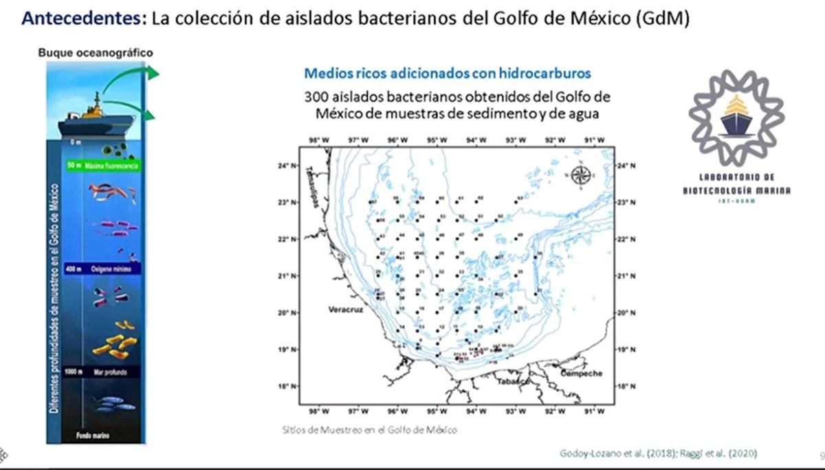 La científica precisó que estudian estas bacterias porque en el Golfo de México hay una gran cantidad de hidrocarburos que emanan naturalmente del subsuelo o debido a la exploración y explotación petrolera, razón por la cual están acostumbradas a comerlos.