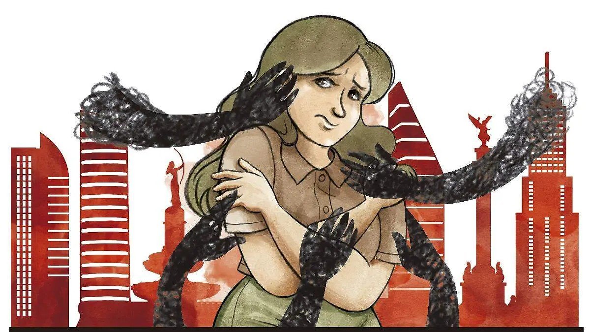 En 2024, más de 184 mujeres que transitaron por Paseo de la Reforma y el Centro Histórico fueron acosadas. / Ilustración: Jaqueline Bautista